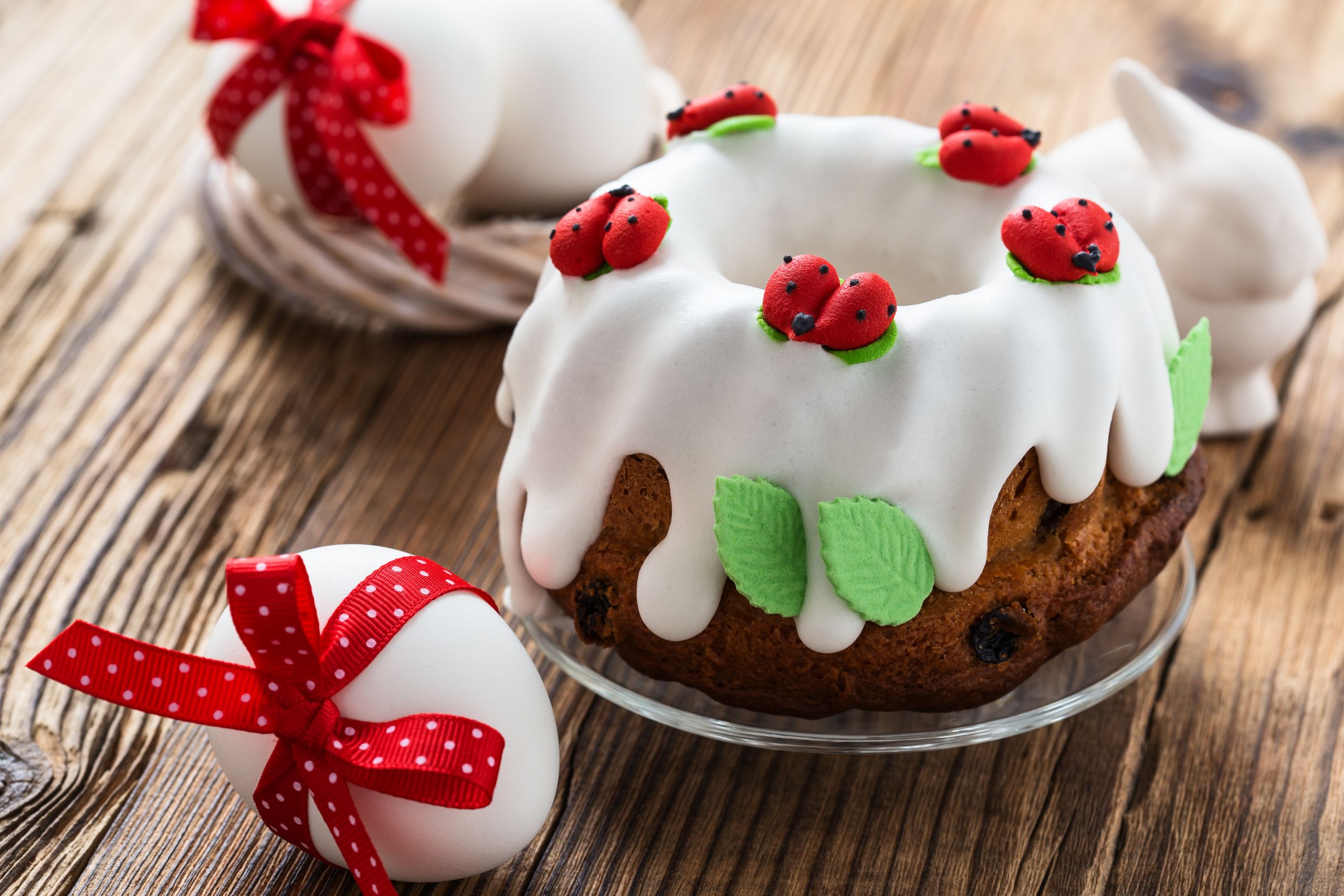 5. Αδειάζετε το μείγμα σε καλά βουτυρωμένη φόρμα. Ψήνετε το κέικ σε μέτριο φούρνο για ¾ 1 ώρα περίπου.