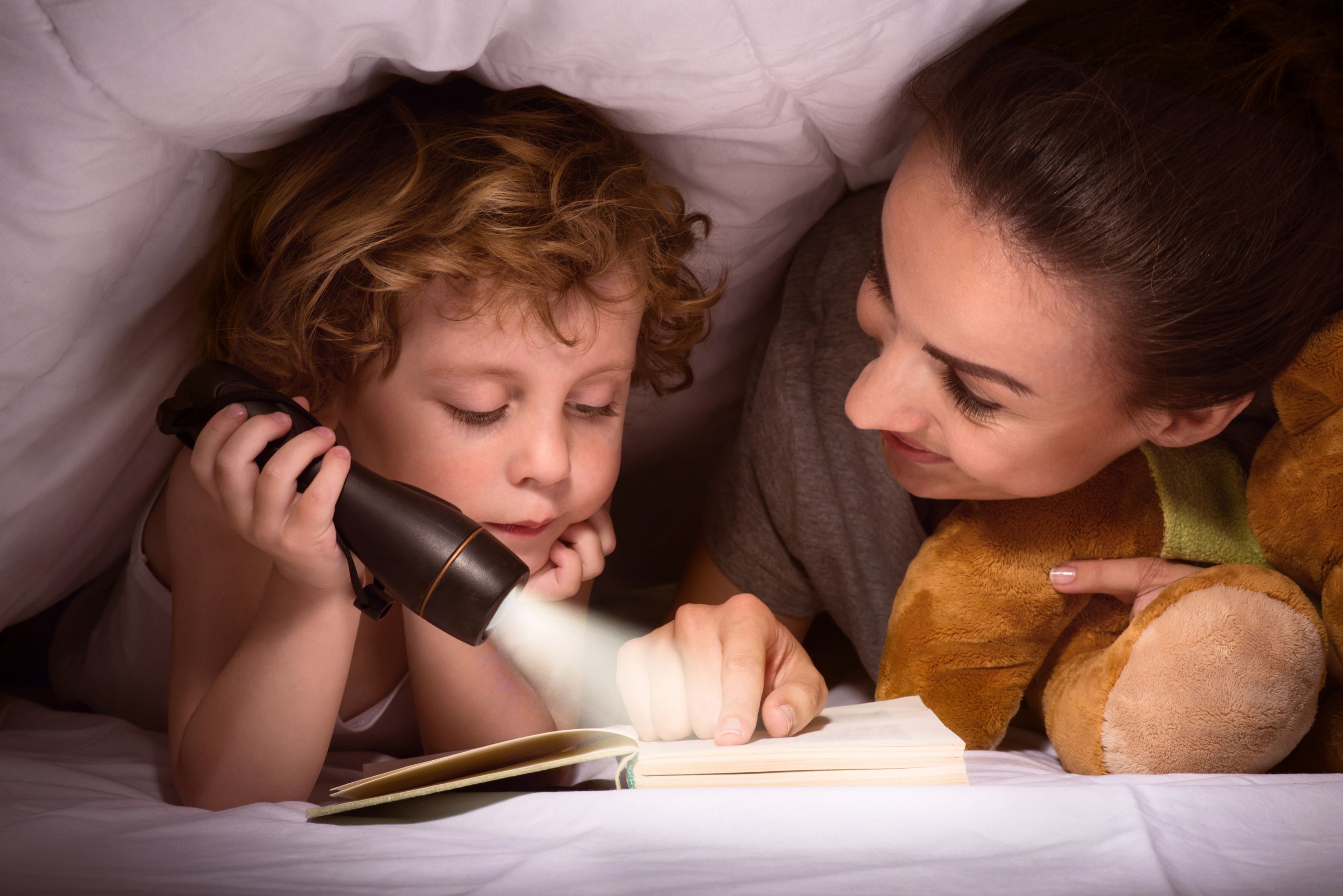 Κάνουμε την κλασική ανάγνωση παραμυθιού λίγο πιο παιχνιδιάρικη. Φωλιάζουμε κάτω από τα σκεπάσματα και με έναν δυνατό φακό διαβάζουμε ένα παραμύθι που έχουμε διαλέξει μαζί με το παιδί σαν να είμαστε κρυμμένοι σε μια φωλιά. Tip: Το παραμύθι πρέπει να μην περιέχει τίποτα τρομακτικό γιατί αυτό μπορεί να διαταράξει τον ύπνο του.
