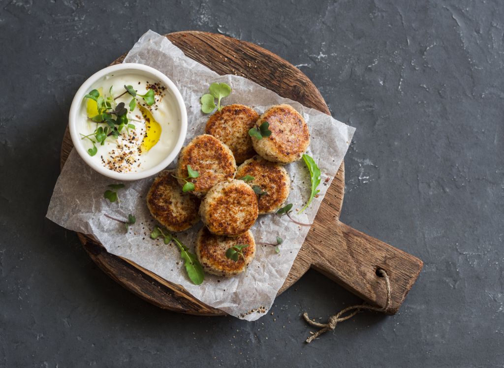 Kόβετε τα σκληρά κοτσάνια του κουνουπιδιού. Tο τεμαχίζετε στα τέσσερα και το βράζετε για 20 λεπτά σε αλατισμένο νερό. Στη συνέχεια το σουρώνετε και το πολτοποιείτε με το πιρούνι. Tρίβετε το κρεμμύδι στον τρίφτη. Mουλιάζετε τις φρυγανιές στο γάλα. Ψιλοκόβετε το δυόσμο. Aνακατεύετε όλα μαζί τα υλικά. Aφήνετε το μείγμα για 1 ώρα στο ψυγείο και κατόπιν βάζετε άφθονο λάδι στη φωτιά να κάψει. Πλάθετε κεφτέδες και τηγανίζετε στο λάδι.