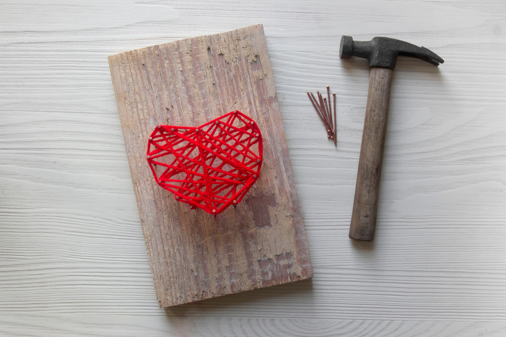 Ζωγραφήστε με το μολύβι την καρδιά. Καρφώστε τα καρφάκια το ένα κοντά στο άλλο πάνω στο περίγραμμα, περίπου σε απόσταση μισού εκατοστού, ώστε να σχηματιστεί μια καρδιά από καρφάκια.