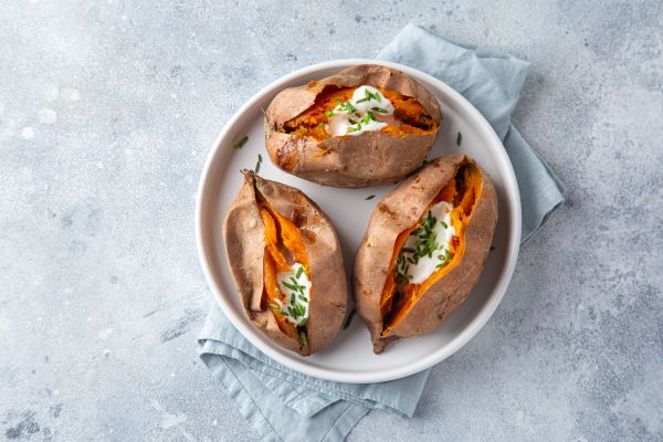Μπορεί να μην είναι τόσο διαδεδομένη όσο η κοινή πατάτα, η γλυκοπατάτα όμως έχει σημαντικά διατροφικά οφέλη για την υγεία μας. Είναι πλούσια σε υδατάνθρακες και φυτικές ίνες, περιέχει σημαντικές ποσότητες β-καροτένιου, βιταμίνης C και καλίου. Όταν τη μαγειρεύουμε καλό είναι να μην την ξεφλουδίζουμε ώστε να διατηρήσουμε την υψηλή θρεπτική της αξία αλλά και τις φυτικές της ίνες.
