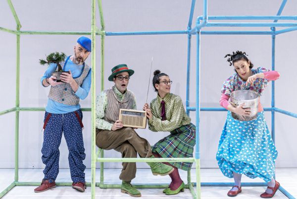 Ο Φοίβος Συμεωνίδης σκηνοθετεί με εφόδια τους κώδικες του βωβού κινηματογράφου και της slapstick κωμωδίας και δημιουργεί χώρο για διάδραση. Οι μικροί θεατές παρακολουθούν μια όμορφη, αστεία και ταυτόχρονα συγκινητική ιστορία που εκτυλίσσεται σε ένα ανατρεπτικό σκηνικό που μοιάζει πολύ με οικοδομή. Καλούνται να συμμετάσχουν ενεργά σε αυτό το «κατασκευαστικό» πανδαιμόνιο, προτείνοντας, στηρίζοντας, χτίζοντας, γκρεμίζοντας, απαντώντας σε ερωτήσεις και συμβουλεύοντας τους ήρωες στις κρίσιμες στιγμές της ιστορίας. Έτσι το έργο λειτουργεί ταυτόχρονα σε δύο παράλληλα επίπεδα, το πραγματολογικό και το συμβολικό, αντιμετωπίζοντας με χιούμορ και παιχνιδιάρικη διάθεση τα μεγάλα ζητήματα της φιλίας, της εμπιστοσύνης, της συνεργασίας, της δημιουργικότητας και της προσπάθειας.