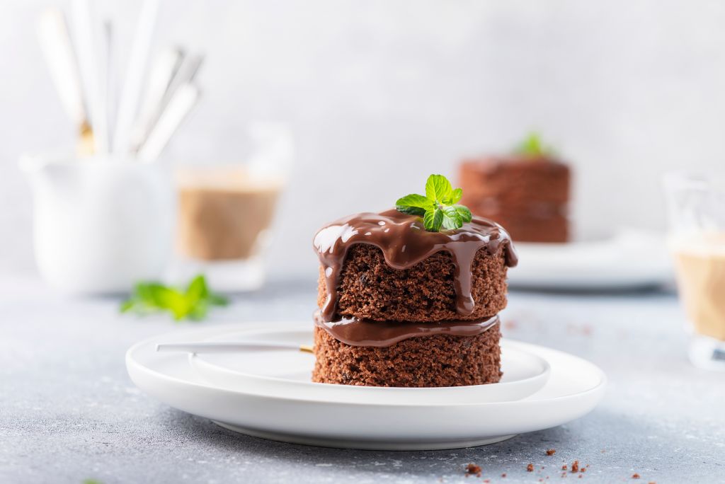 1. Προθερμάνετε το φούρνο στους 180° C. Κοσκινίστε το αλεύρι, το μπέικιν πάουντερ και το κακάο σε μπολ. Προσθέστε τη ζάχαρη, το αλάτι και το βούτυρο. Ανακατέψτε μέχρι το μείγμα να μοιάζει με λεπτά ψίχουλα. Σε μπολ, χτυπήστε τα αυγά, το γάλα, το εκχύλισμα βανίλιας και το γιαούρτι μέχρι να αναμειχθούν καλά.