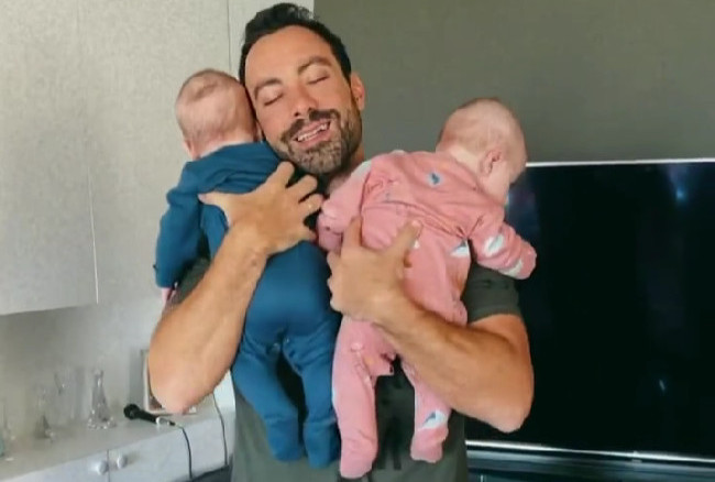 Ο γνωστός παρουσιαστής μοιράστηκε σήμερα ένα άκρως τρυφερό βίντεο από το σπίτι τους, στο οποίο βλέπουμε τις δίδυμες να παίζουν στο πάτωμα και τον φωνάζουν «μπαμπά», με τον ίδιο να μην μπορεί να κρύψει τη συγκίνησή του.