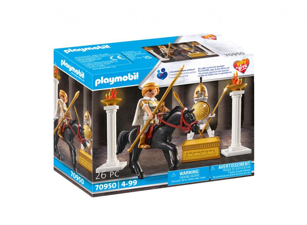 Το συλλεκτικό σετ PLAYMOBIL play & give «Μέγας Αλέξανδρος» κυκλοφορεί σε περιορισμένο αριθμό τεμαχίων, αποκλειστικά στην ελληνική αγορά. Όπως κάθε χρόνο, μέρος των εσόδων από τις πωλήσεις του διατίθεται στην Τράπεζα Εθελοντών Δοτών Μυελού των Οστών, του Σωματείου «Σύλλογος ΟΡΑΜΑ ΕΛΠΙΔΑΣ».