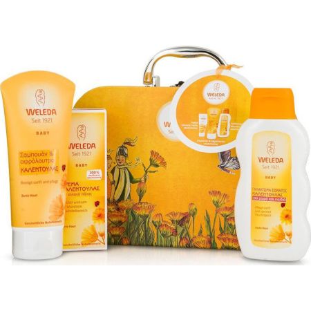 Το Weleda Βαλιτσάκι Σετ Καλέντουλας τα έχει όλα. Σαμπουάν, λάδι περιποίησης και κρέμα για την αλλαγή της πάνας. Ολα περιέχουν βιολογική καλέντουλα που περιποιείται απαλά και δρα καταπραϋντικά, στο ευαίσθητο βρεφικό δερματάκι.