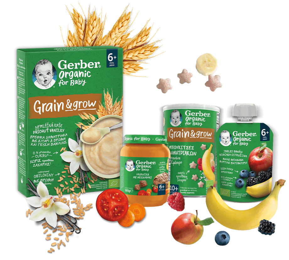 Η βιολογική σειρά βρεφικών γευμάτων GERBER® organic for baby, ήρθε στην Ελλάδα για να κερδίσει τις καρδιές μαμάδων και μπαμπάδων! Η σειρά αποτελείται από Βρεφικά Δημητριακά, Μπουκίτσες Δημητριακών, Βρεφικά Γεύματα Φαγητού και Φρουτοπουρέδες, όλα φτιαγμένα με συστατικά υψηλής ποιότητας, που στο πλαίσιο μιας ισορροπημένης διατροφής, συμβάλλουν στην κάλυψη των διατροφικών αναγκών των μωρών καθ’ όλη τη διάρκεια της ημέρας!