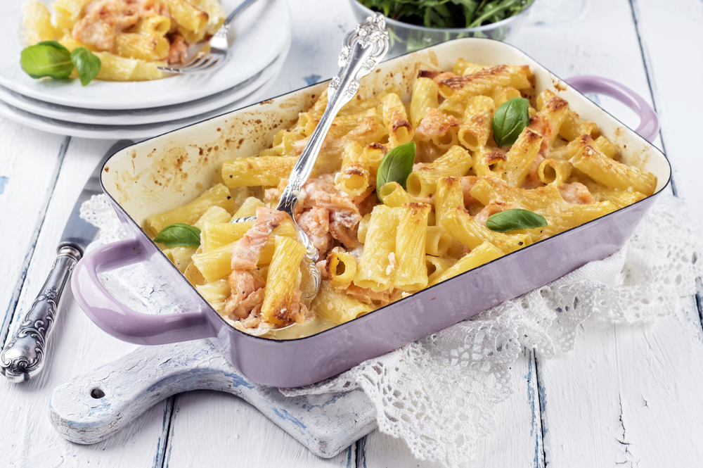 3.Μεταφέρετε το μείγμα των ζυμαρικών σε πυρέξ, που το έχετε βουτυρώσει.