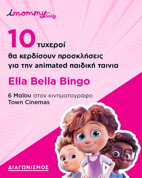 Πάρτε μέρος στον διαγωνισμό του iMommy στο Instagram από τις 03/05 έως τις 05/05 για να κερδίσετε μία από τις δέκα τριπλές προσκλήσεις (κάθε μία από τις δέκα προσκλήσεις ισχύει, δηλαδή, για τρία άτομα) για την πρεμιέρα της animated παιδικής ταινίας «Η Έλα Μπέλα και τα Μαγικά της», η οποία θα πραγματοποιηθεί το Σάββατο 6 Μαΐου στον κινηματογράφο Town Cinemas (Ζησιμοπούλου 7, Γλυφάδα) στις 16.15 (15.45 ώρα προσέλευσης).