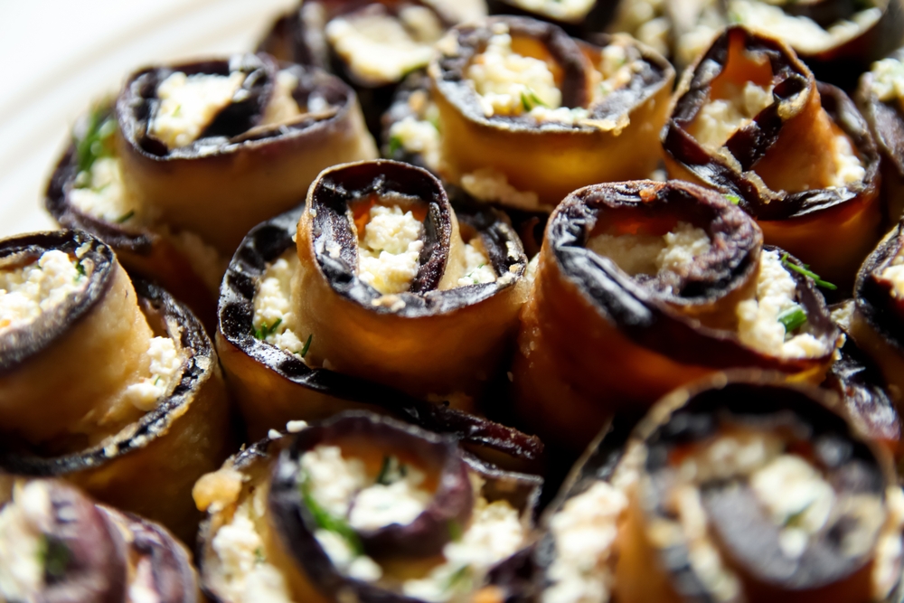 Βγάζουμε τις μελιτζάνες από τον φούρνο και περιμένουμε να κρυώσουν ελαφρώς. Κόβουμε το τυρί σε κομμάτια περίπου όσο μισό σπιρτόκουτο. Τοποθετούμε κάθε κομμάτι στην άκρη της κάθε φέτας μελιτζάνας και τυλίγουμε σε ρολό.