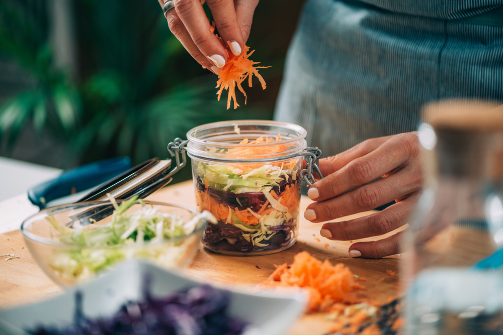 Κόβουμε τα λαχανικά όσο πιο λεπτά μπορούμε. Τα βάζουμε σε ένα καθαρό βάζο.