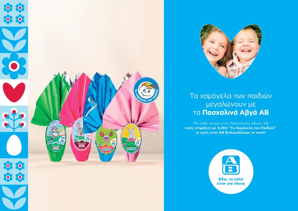 «Όταν ακούς ΑΒ περιμένεις πάντα κάτι καλό», γι’ αυτό και η ΑΒ Βασιλόπουλος φροντίζει και το φετινό Πάσχα να προσφέρει στους καταναλωτές και ιδιαίτερα στα παιδιά, δώρα και εκπλήξεις, ώστε να περάσουν ακόμα πιο ευχάριστα τις ημέρες των διακοπών μαζί με τους αγαπημένους τους. Για 8η συνεχή χρονιά, η ΑΒ Βασιλόπουλος φέρνει τα Πασχαλινά Αβγά της, δίνοντας ακόμα μεγαλύτερη χαρά στα παιδιά και στηρίζοντας το πολύτιμο έργο του Οργανισμού «Το Χαμόγελο του Παιδιού».
