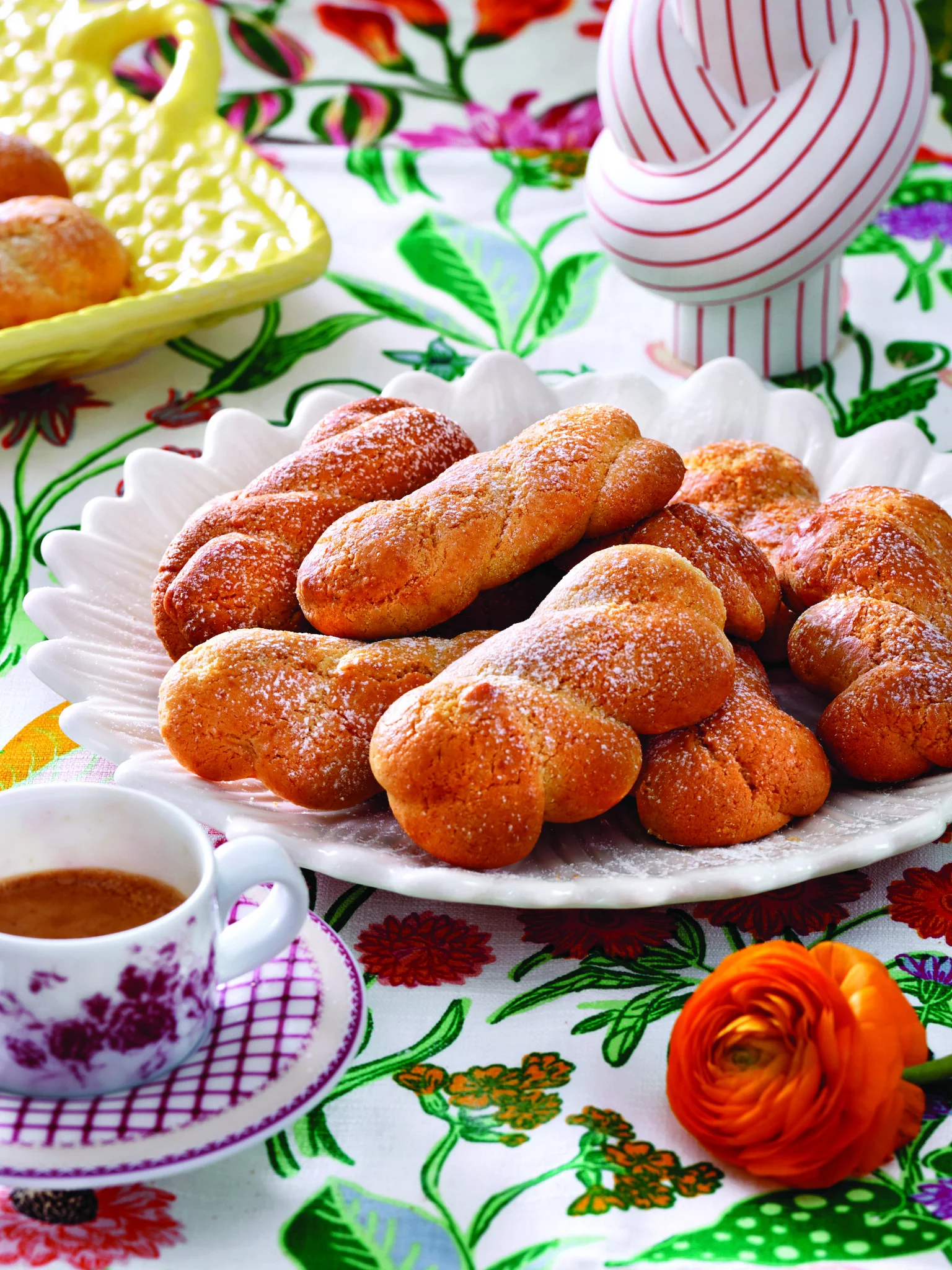 Τα αφήνουμε 10 λεπτά να ξεκουραστούν και προθερμαίνουμε το φούρνο στους 160-170°C στον αέρα. Ψήνουμε τα κουλουράκια για 20 λεπτά περίπου, μέχρι να ροδοκοκκινίσουν όμορφα.