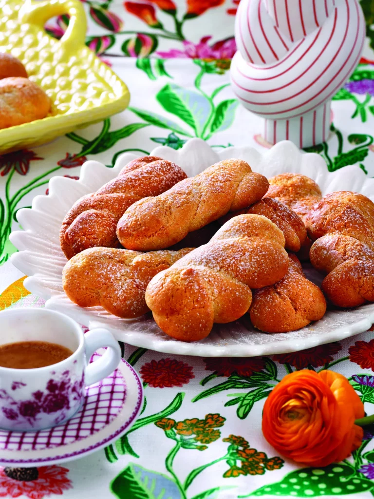 Παίρνουμε μικρές ποσότητες ζύμης (25 γρ. περίπου) και πλάθουμε κορδόνια τα οποία στο τέλος ενώνουμε σε κουλούρια. Τα αραδιάζουμε σε τρία ταψιά στρωμένα με χαρτί ψησίματος, αφήνοντας αρκετό χώρο μεταξύ τους, γιατί θα φουσκώσουν αρκετά στο ψήσιμο.