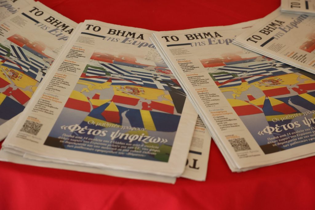 Την ίδια μέρα, η εφημερίδα το «ΒΗΜΑ της Ευρώπης» (γραμμένη αποκλειστικά από μαθητές) που κυκλοφόρησε μαζί με το ΒΗΜΑ, ήταν αφιερωμένη στη στάση των νέων και τη γνώμη τους για την Ευρωπαϊκή Ένωση και τις επικείμενες εκλογές. Να υπενθυμίσουμε ότι οι Μαθητικές Εφημερίδες που εκδίδονται εδώ και 4 χρόνια μαζί με το ΒΗΜΑ, έχουν βραβευτεί τιμητικά στο πλαίσιο των βραβείων Education Leaders Awards και έχουν τεθεί υπό την αιγίδα του Υπουργείου Παιδείας, Θρησκευμάτων και Αθλητισμού.