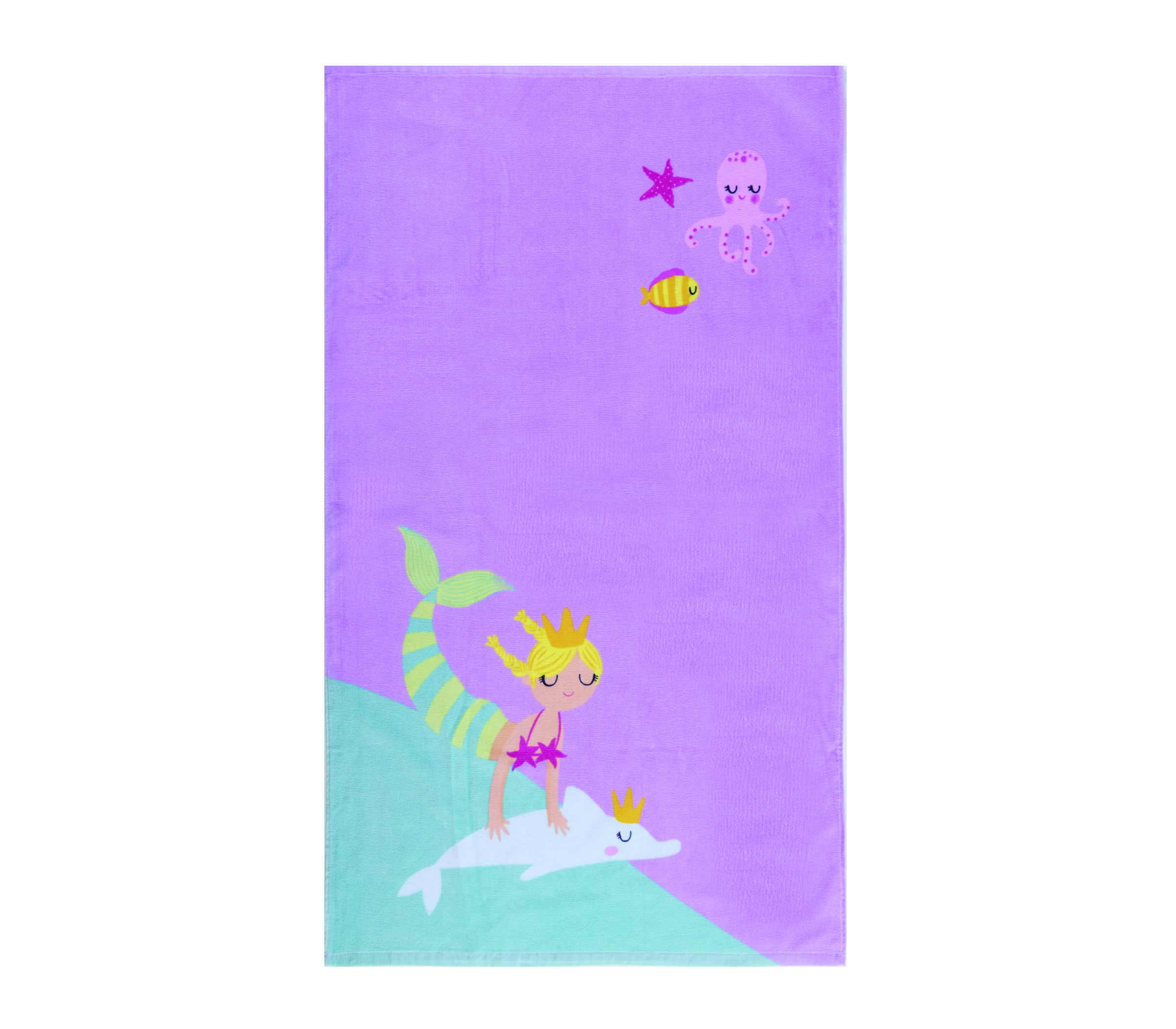 Mermaid having fun, Πετσέτα θαλάσσης βελουτέ από 100% βαμβάκι, 70×120, 11€.