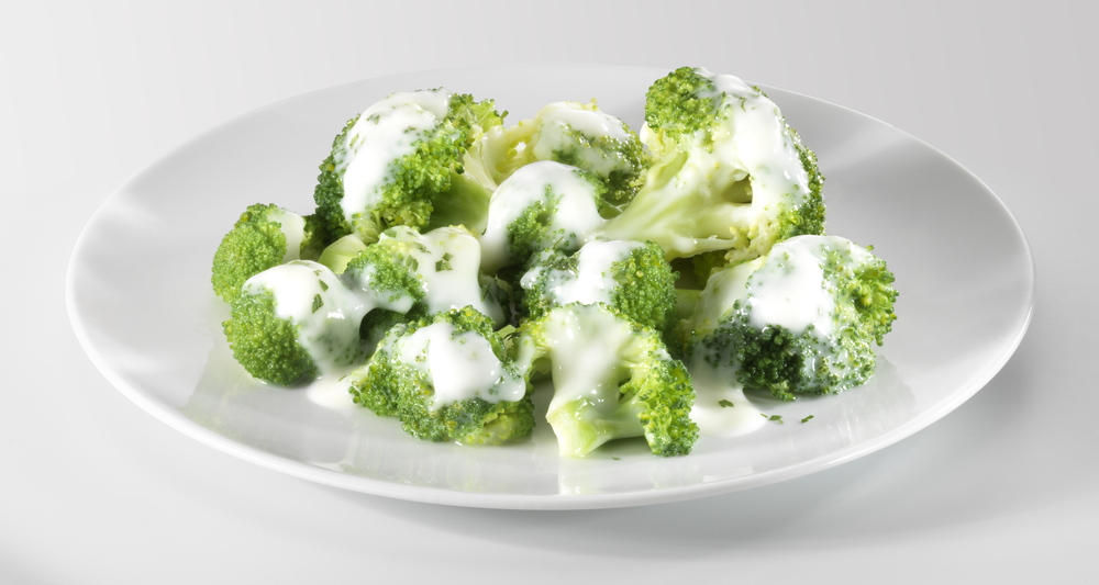 Μόλις το ταψί κάψει, βάλτε μέσα τα μπουκετάκια μπρόκολου και αφήστε στα φούρνο για περίπου 15 με 20 λεπτά, αναλόγως πόσο θέλετε να τα ψήσετε. Αφαιρέστε το μπρόκολο από το φούρνο και περιχύστε το με την σως γιαουρτιού.