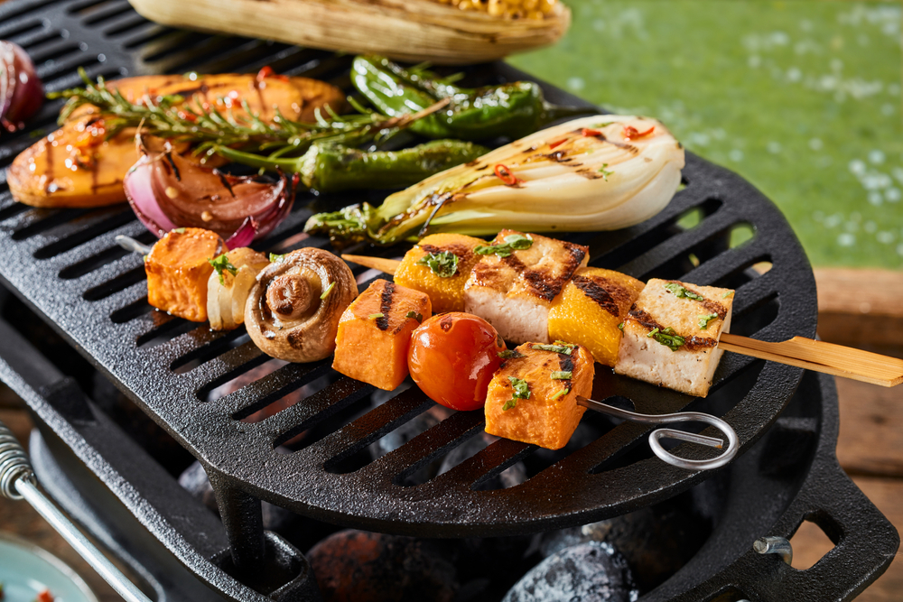 Ζεστάνετε μια ψησταριά σε μέτρια προς δυνατή φωτιά. Προσθέστε τα σουβλάκια στη σχάρα και ψήστε τα μέχρι να πάρουν χρώμα από όλες τις πλευρές. Αλείψτε τα σουβλάκια με τη μαρινάδα που έχει απομείνει όσο βρίσκονται στη σχάρα.