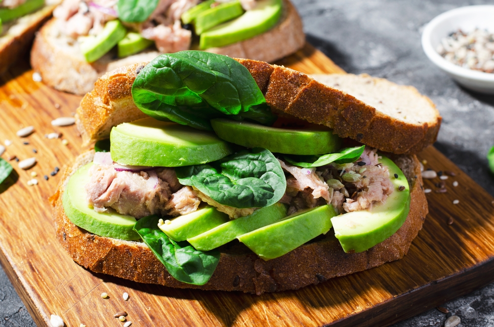 Ετοιμάζετε το σπανάκι. Το βράζετε σε αλατισμένο νερό. Στη συνέχεια το στραγγίζετε. Κατόπιν προσθέτετε τα μουστάρδα, τη μαγιονέζα, το μαϊντανό. Τα ανακατεύετε όλα μαζί. Τέλος σκεπάζετε με τον τόνο. Σερβίρετε μόνο του, μέσα σε σάντουιτς ή wrap και με μακαρόνια.