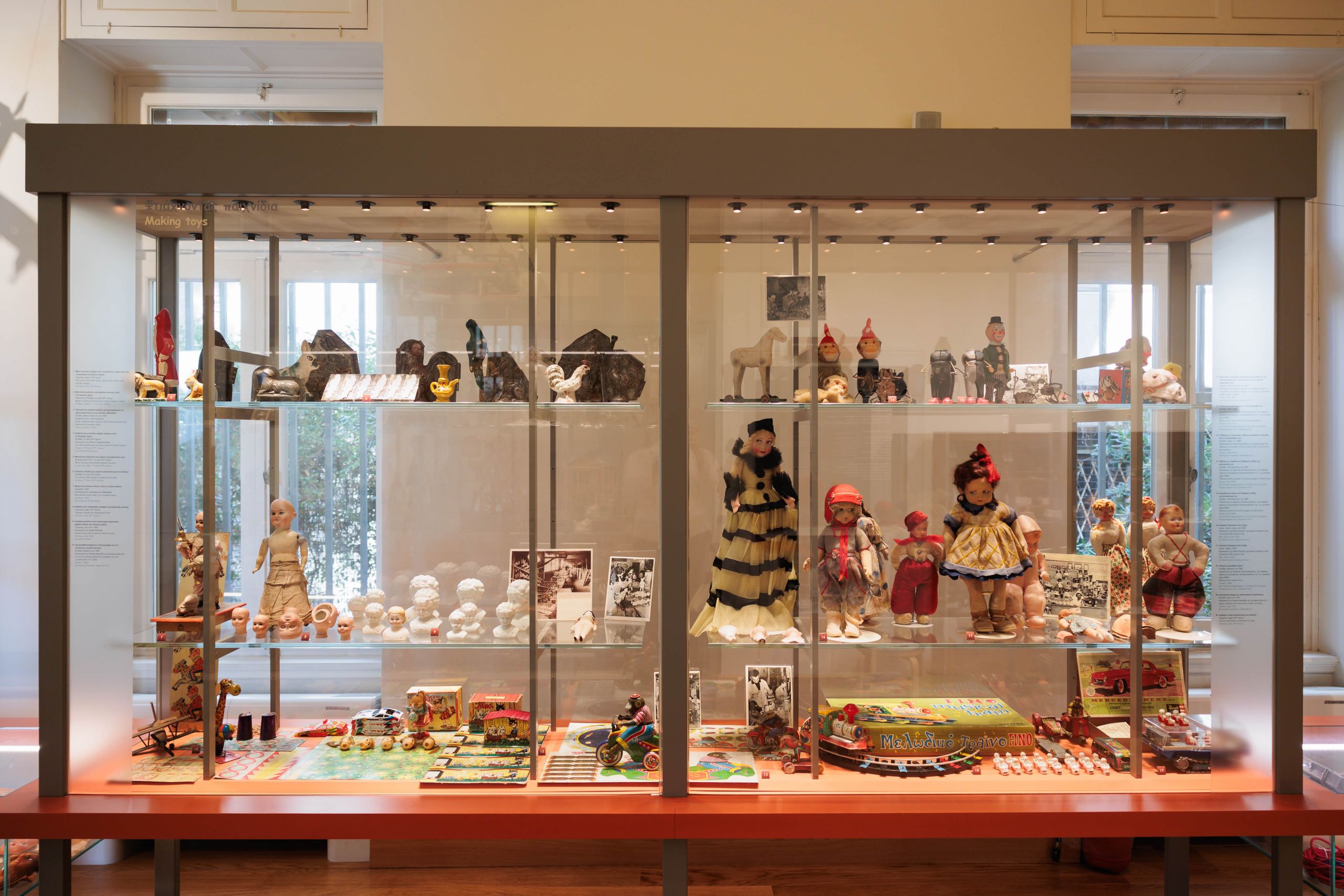 Η ενότητα της ελληνικής συλλογής περιλαμβάνει βρεφικά και παιδικά αντικείμενα και άλλα αντικείμενα από τους αρχαίους έως τους νεώτερους χρόνους, όπως χειροποίητα παραδοσιακά παιχνίδια και αντικείμενα του 18ου-20ού αι., λαϊκά πανηγυριώτικα και τα αστικά εμπορικά παιχνίδια του 20ού αι., επιτραπέζια παιχνίδια, καθώς και ομαδικά παιχνίδια δρόμου και παιδικά έθιμα. Στην ενότητα της ευρωπαϊκής συλλογής συγκαταλέγονται παιχνίδια αγοριών και κοριτσιών, αστικά και λαϊκά, που χρονολογούνται από τον 18ο έως τον 20ό αι. και προέρχονται κυρίως από την Αγγλία, τη Γαλλία και τη Γερμανία, καθώς και ευρωπαϊκές κούκλες του 19ου και 20ού αι. με φορεσιές από διάφορες περιοχές της Ελλάδας.