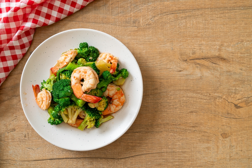- Δυναμώστε τη φωτιά σε μέτρια προς υψηλή και προσθέστε την υπόλοιπη 1 κουταλιά της σούπας λάδι στην κατσαρόλα. Προσθέστε το υπόλοιπο σκόρδο και μαγειρέψτε μέχρι να αρχίσει να ροδίζει, για περίπου 1 λεπτό. Προσθέστε τις γαρίδες και το υπόλοιπο 1/4 κουταλάκι του γλυκού αλάτι και πιπέρι. Μαγειρέψτε, ανακατεύοντας, μέχρι να ψηθούν οι γαρίδες, για 3 έως 5 λεπτά. Επιστρέψτε το μείγμα του μπρόκολου στην κατσαρόλα μαζί με το χυμό λεμονιού και ανακατέψτε μέχρι να ενωθούν όλα τα υλικά.