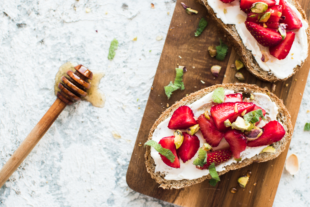 - Απλώστε το μασκαρπόνε στη φέτα του ψωμιού. Μπορείτε να το αναμείξετε με λίγο μέλι, αν θέλετε.