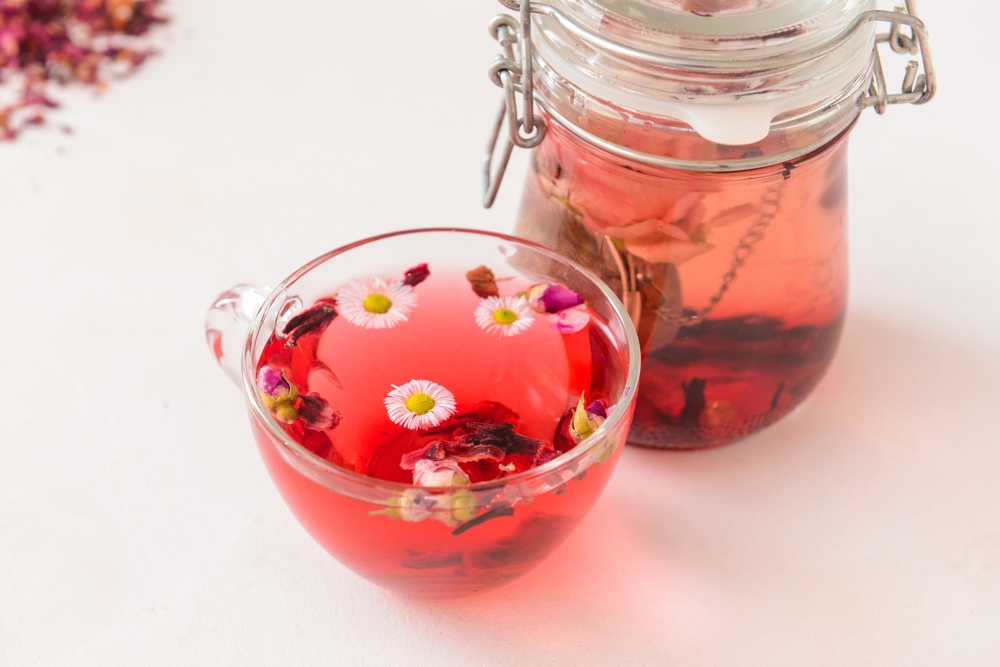 - Ρίχνουμε σε ένα μπρίκι το νερό, το τριαντάφυλλο και το χαμομήλι και βράζουμε το μείγμα για 3 λεπτά. Το αποσύρουμε από τη φωτιά και το αφήνουμε να σταθεί για 3 λεπτά ακόμα. Σουρώνουμε και σερβίρουμε το ρόφημα ζεστό.