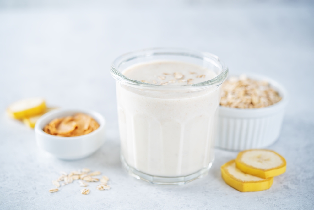 - Σερβίρετε στο ποτήρι με μπανάνα και λίγη βρώμ αν θέλετε.