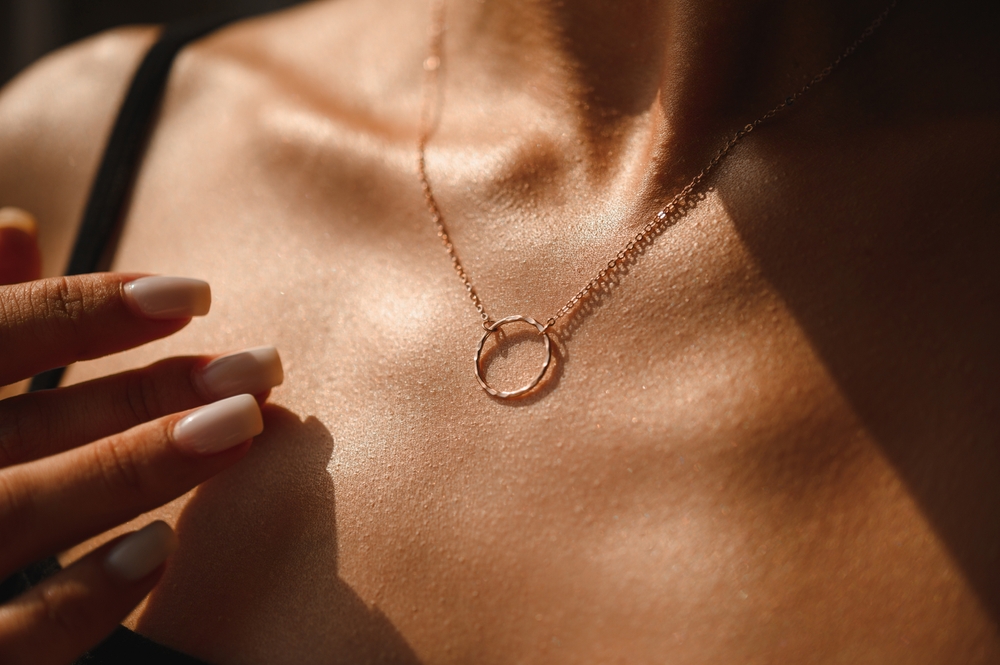Ποια δε θέλει να είναι λαμπερή όταν φοράει το αγαπημένο της στράπλες φόρεμα; Γι’ αυτό επιλέξτε ένα λεπτόρρευστο έλαιο σώματος που δίνει μια φυσική γυαλάδα και απλώστε το στην περιοχή του ντεκολτέ και στους ώμους σας. Μπορείτε μάλιστα να αναμίξετε μερικές σταγόνες ελαίου με ένα gel υαλουρονικού οξέος για ένα σούπερ λαμπερό φινίρισμα.
