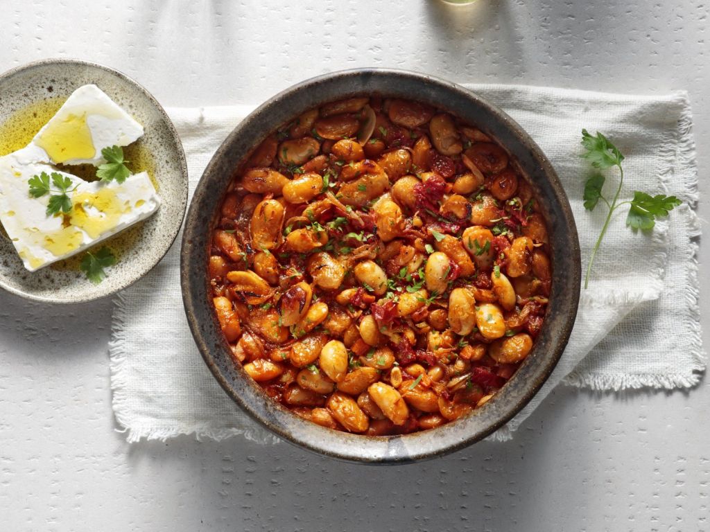 - Την επόμενη ημέρα, τους ξεπλένουμε καλά, τους βάζουμε σε κατσαρόλα με κρύο νερό και τους βράζουμε μέχρι να μαλακώσουν, για περίπου 40 λεπτά, ξαφρίζοντας όποτε χρειάζεται. Τους στραγγίζουμε καλά και τους μεταφέρουμε σε ταψί.
