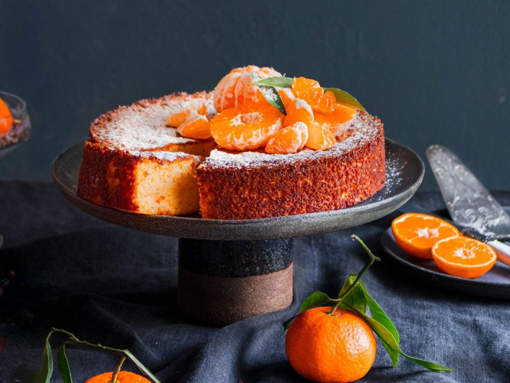 - Αδειάζουμε τη ζύμη σε ένα ταψί ή μια φόρμα με αποσπώμενη βάση 24 εκ. και ψήνουμε για 50 λεπτά, στους 175°C. Βγάζουμε το κέικ από το φούρνο και, μόλις κρυώσει καλά, το ξεφορμάρουμε σε πιατέλα και το πασπαλίζουμε με άχνη ζάχαρη, αν θέλουμε.