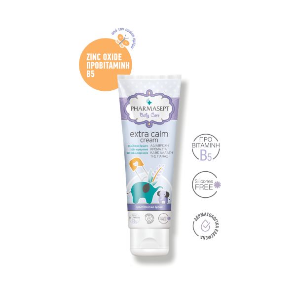 Αυτή τη φροντίδα προσφέρει στο μωράκι σου η Baby Care Extra Calm Cream, η αδιάβροχη κρέμα της Pharmasept με αποτελεσματική ενυδατική δράση από Ω3-Ω6 λιπαρά οξέα, καθώς και προστασία από προβιταμίνη Β5, εκχύλισμα βρώμης και λάδι χαμομηλιού. Η συγκεκριμένη κρέμα είναι ιδανική για κάθε αλλαγή της πάνας από την πρώτη ημέρα, έχει ήπια προστατευτική δράση για τη βρεφική επιδερμίδα και προσφέρει ανακούφιση στο μωράκι σου από τους ερεθισμούς.