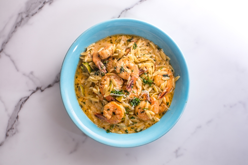 Στο τελευταίο λεπτό, προσθέστε τις γαρίδες και ανακατέψτε τες ελαφρώς.
