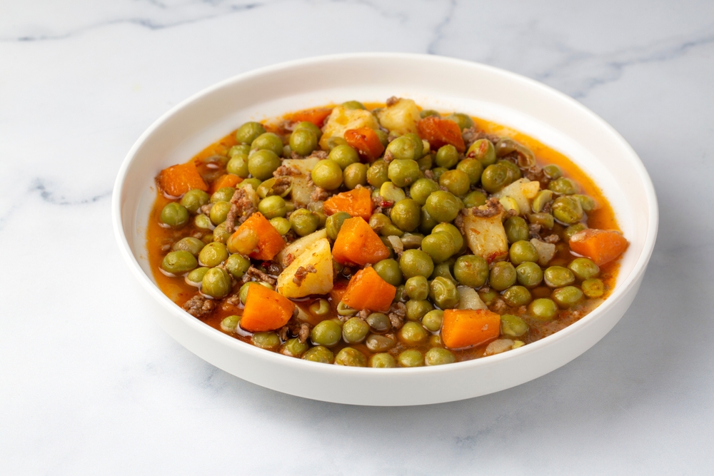 Προσθέτουμε τον αρακά με λίγο επιπλέον νερό (αν χρειάζεται), σκεπάζουμε και μαγειρεύουμε για 5 λεπτά.