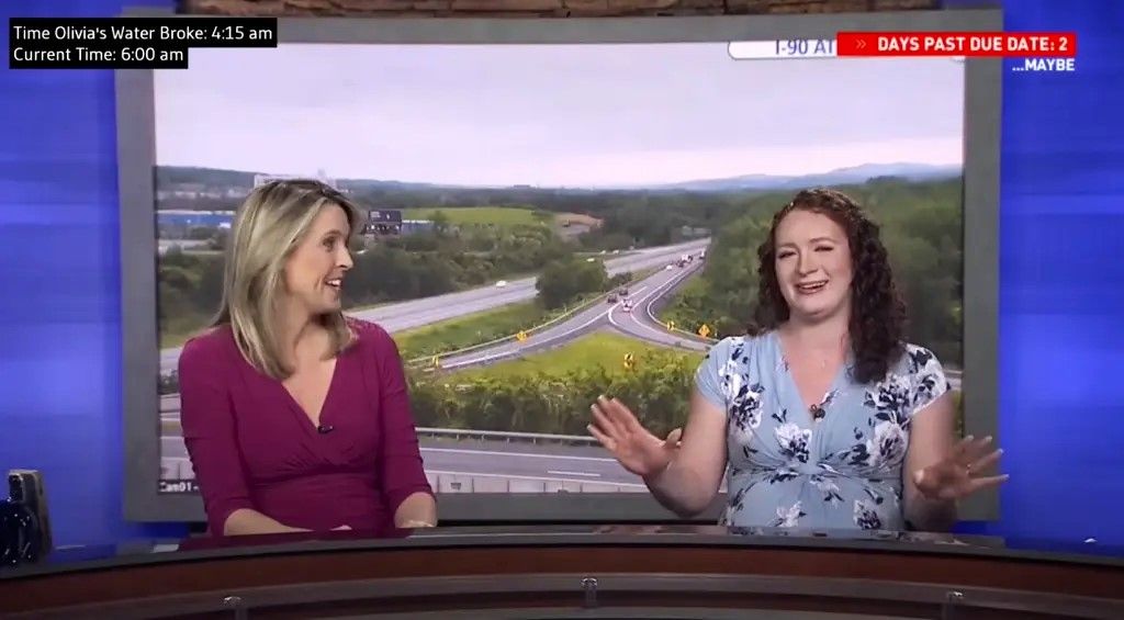 Η Ολίβια Τζάκουιθ, παρουσιάστρια του WRGB , θυγατρικού του CBS στο Όλμπανι, ανακοίνωσε την Τετάρτη το απόγευμα  ότι τα νερά της είχαν σπάσει λίγο πριν την έναρξη του δελτίου ειδήσεων, όπως ανέφερε το NBC News.
