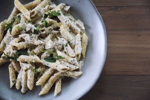 Σε κατσαρόλα βράζουμε τα ζυμαρικά σύμφωνα με τις οδηγίες του πακέτου, ώσπου να γίνουν al dente. Σουρώνουμε, περιχύνουμε με το μισό ελαιόλαδο και ανακατεύουμε. Ξεπλένουμε την κατσαρόλα, τη στεγνώνουμε και την ξαναβάζουμε σε δυνατή φωτιά.