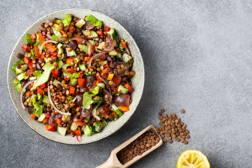Σε ένα μπολ προσθέτετε τις φακές, την κινόα, τα λαχανικά, το σκόρδο, τα αρωματικά, τα μπαχαρικά, το λάδι, αλάτι, πιπέρι, τη φέτα και ανακατεύετε ελαφρά.