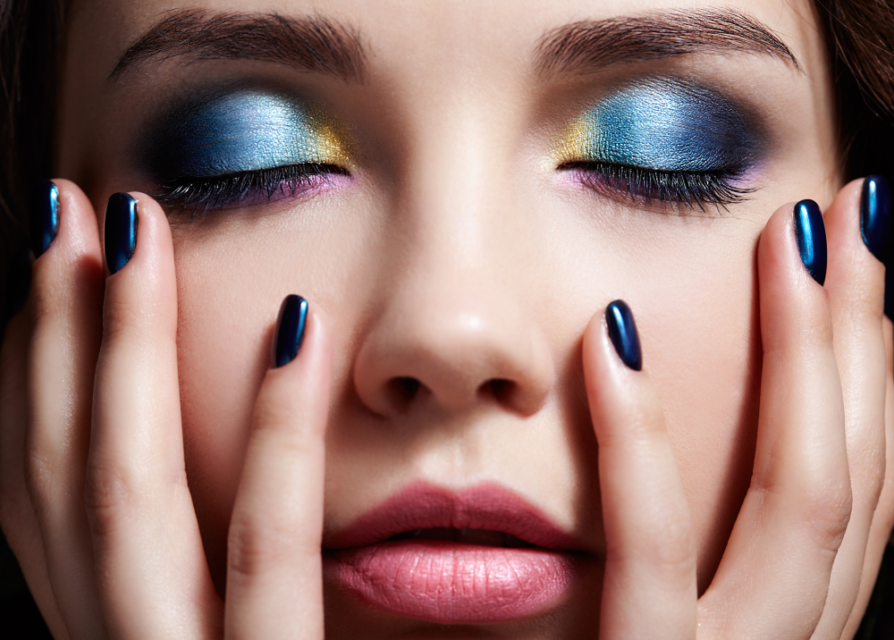Οι μεταλλικές σκιές κάνουν πάντα τη διαφορά και λατρεύουμε αυτό το «παγωμένο» μπλε στο κινητό βλέφαρο σε συνδυασμό με το baby pink. Εφαρμόστε τη ροζ σκιά με shimmer στην εσωτερική γωνία των ματιών και στο σημείο όπου βρίσκεται το κόκκαλο του φρυδιού και απλώστε το μπλε σε όλο το κινητό βλέφαρο. Κάντε πολύ καλό μπλεντάρισμα στο σημείο που ενώνονται οι δύο σκιές για να «σβήνει» ομοιόμορφα η μία μέσα στην άλλη. Ολοκληρώστε με μερικές στρώσεις μάσκαρα για όγκο και είστε έτοιμες.