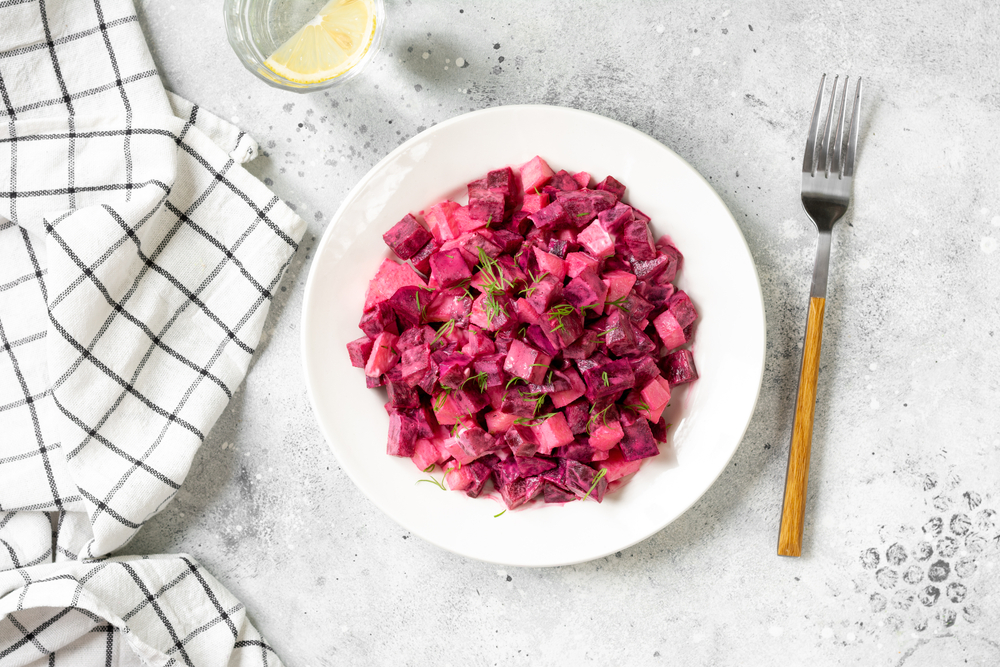 Ανακατεύουμε με κουτάλι και μεταφέρουμε την παντζαροσαλάτα στο ψυγείο να κρυώσει και να δέσουν τα αρώματα και οι γεύσεις.