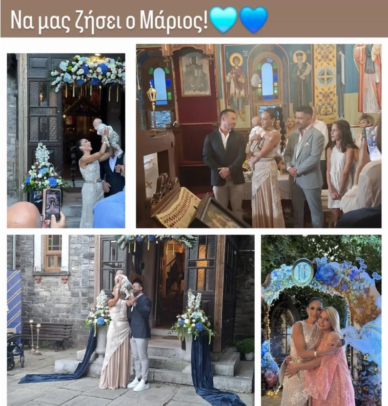 Ο νεοφώτιστος πήρε το όνομα Μάριος και νονοί ήταν φιλικά πρόσωπα του ζευγαριού. Η Ανθή Βούλγαρη έλαμπε ευτυχισμένη κρατώντας στην αγκαλιά της τον μικρό, ενώ ο σύζυγός της, Κώστας Κωνσταντινίδης, συγκινήθηκε ιδιαίτερα καθ’ όλη τη διάρκεια της τελετής.