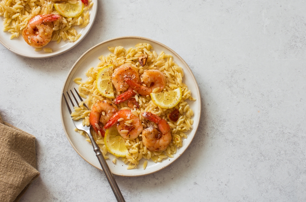 Μετά προσθέτουμε τις γαρίδες και ανακατεύουμε για τα επόμενα δύο λεπτά, ίσα ίσα για να αχνιστούν. Η συνταγή είναι έτοιμη.