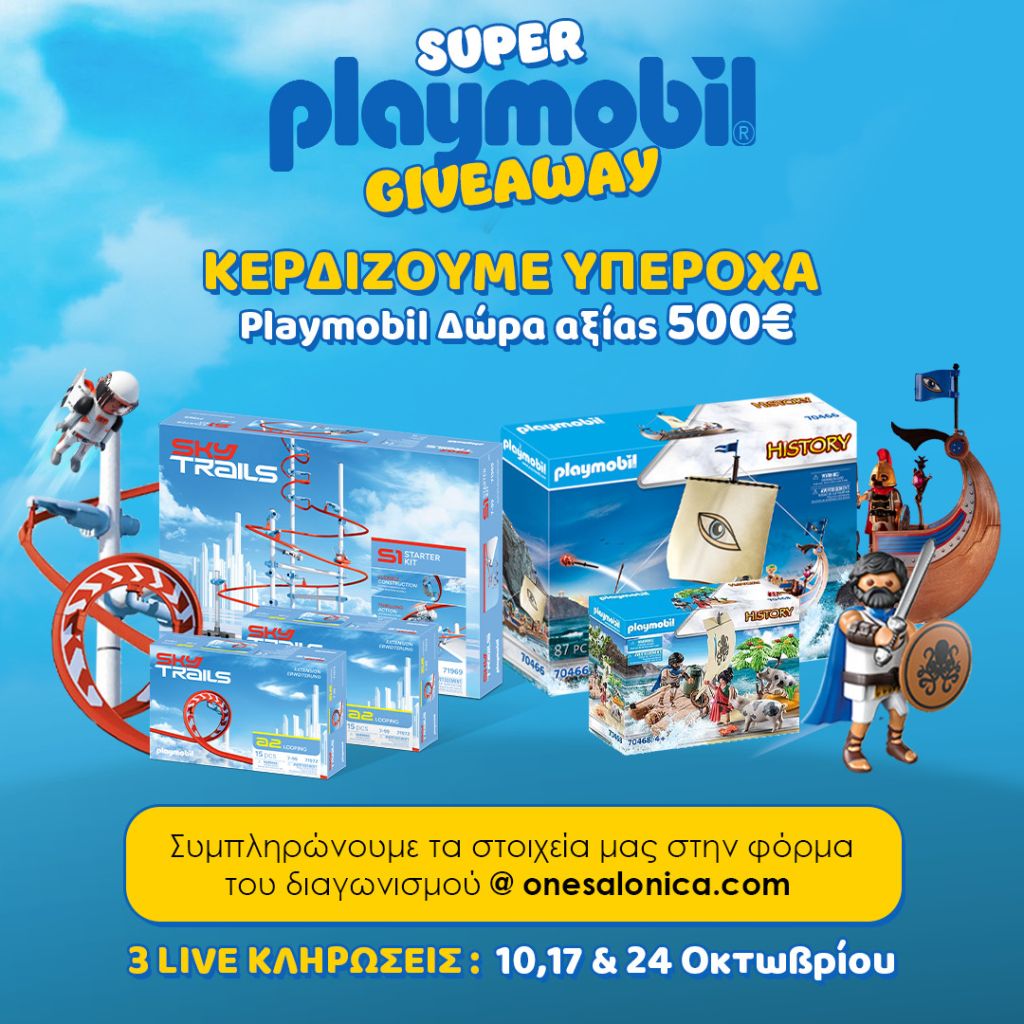 Η εμπειρία γίνεται ακόμα πιο συναρπαστική με το Playmobil Giveaway! Οι επισκέπτες μπορούν να μπουν στην κλήρωση για 8 μοναδικά Playmobil Sets, εμπνευσμένα από την Αργώ και τα Sky Trails, συνολικής αξίας 500€. Οι νικητές θα αναδειχθούν μέσα από τρεις live κληρώσεις, στις 10, 17 & 24 Οκτωβρίου.