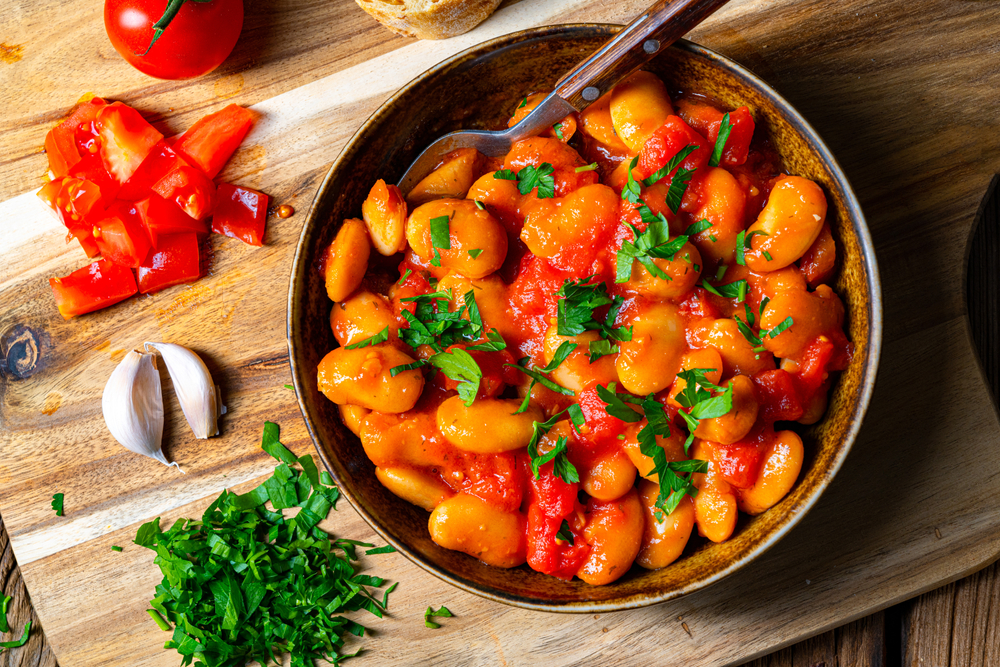 Μεταφέρετε τους γίγαντες σε ένα ταψί ή πυρίμαχο σκεύος, περιχύστε με το υπόλοιπο ελαιόλαδο και ψήστε για 35–40 λεπτά, μέχρι να μαλακώσουν εντελώς και η σάλτσα να δέσει.