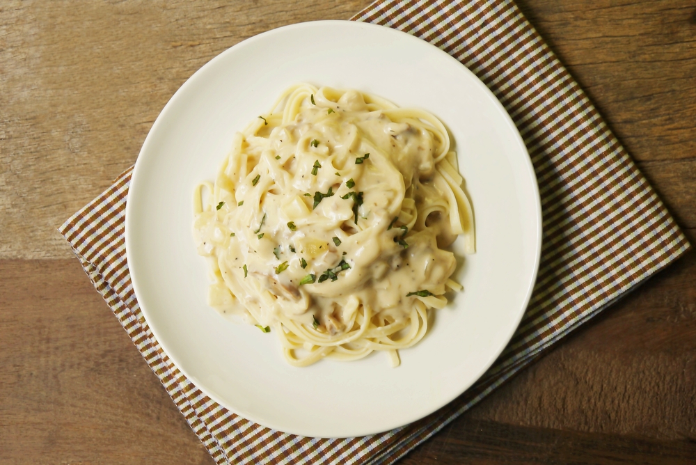 - Χτυπάμε 200γρ γάλα άπαχο και 2κ.σ κρεμώδες τυρί άπαχο και ανακατεύουμε μέχρι να δέσει η σάλτσα.