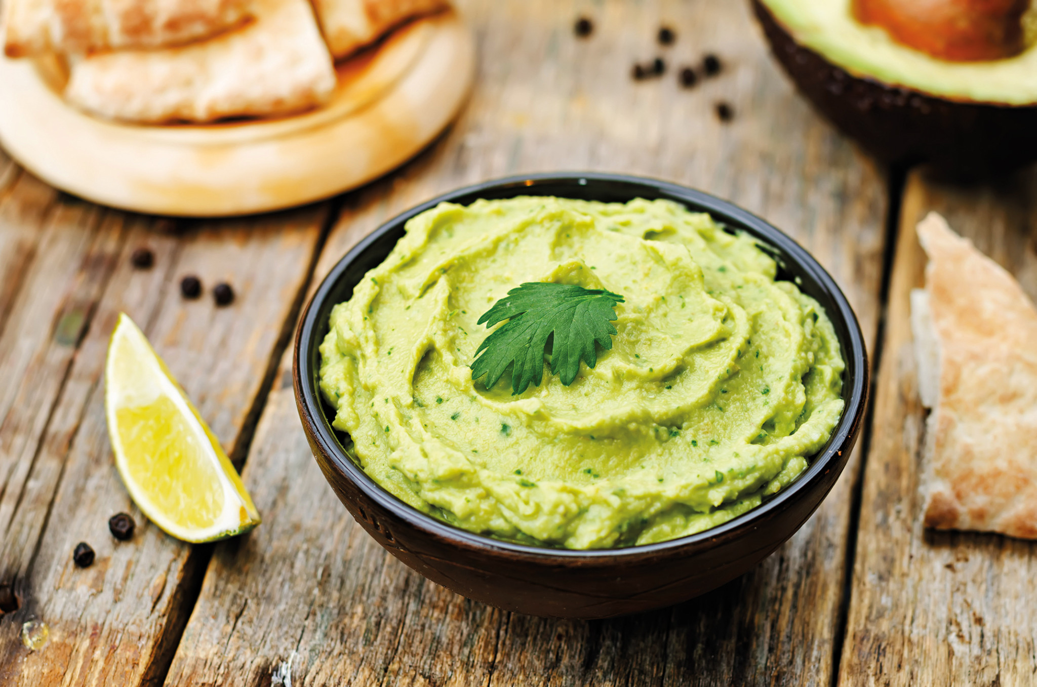 Πολτοποιούμε στο μπλέντερ τα βρασμένα ρεβίθια με το αβοκάντο, το ταχίνι, το χυμό λεμονιού, το σκόρδο, το ελαιόλαδο, το κύμινο, αλάτι και πιπέρι μέχρι να αποκτήσουμε ένα λείο και κρεμώδες μείγμα.