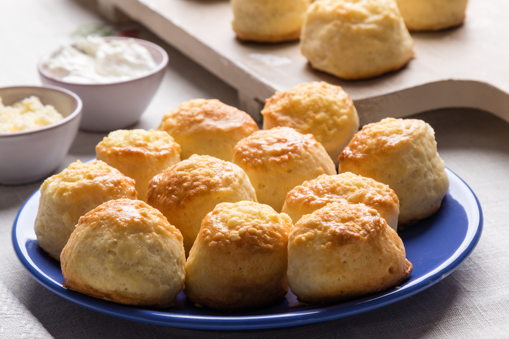 Κόψτε τη ζύμη με έναν κυκλικό κόφτη 6 εκ. (2 1/2 ίντσες), πιέζοντας ευθεία προς τα κάτω. (Μην στρίβετε τον κόφτη, αλευρώστε ελαφρά αν χρειαστεί.) Τοποθετήστε τα στρογγυλά κομμάτια ζύμης στο προετοιμασμένο ταψί. Επαναχρησιμοποιήστε και κόψτε τα υπόλοιπα κομμάτια ζύμης μέχρι να εξαντληθεί η ζύμη.