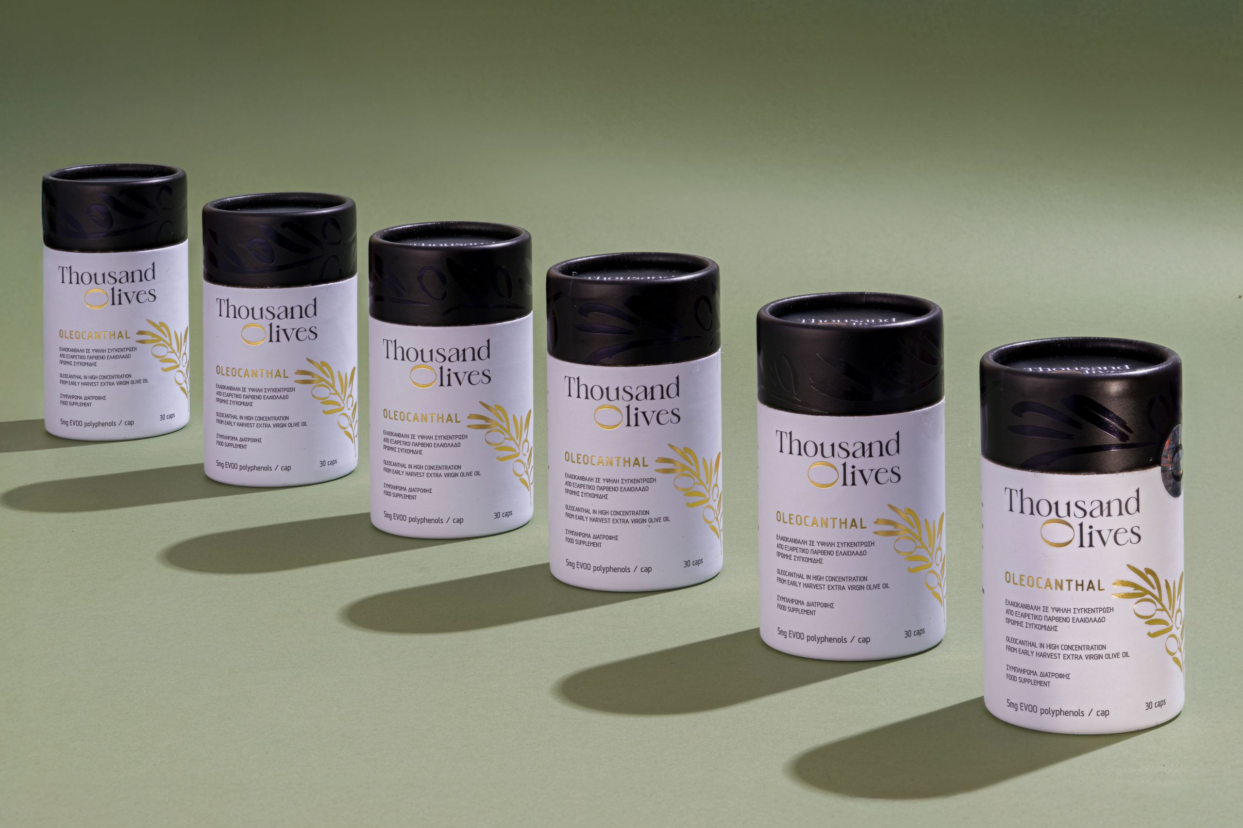 Η δράση της είναι πολλαπλή και στοχεύει ακριβώς τους μηχανισμούς που βρίσκονται πίσω από το inflammaging. Η Ελαιοκανθάλη βρίσκεται σε υψηλή συγκέντρωση στο συμπλήρωμα διατροφής, Thousand Olives. Είναι το μοναδικό συμπλήρωμα διατροφής που περιέχει 5 mg πολυφαινολών ελαιολάδου από άγουρες ελιές με υψηλό ποσοστό  ελαιοκανθάλης άνω του 50% ανά κάψουλα. Τι ακριβώς όμως σημαίνει υψηλή συγκέντρωση ελαιοκανθάλης; Σημαίνει ότι ένα κουτί Thousand Olives με 30 κάψουλες περιέχει την αναλογία Ελαιοκανθάλης από 1000 ελιές. Πρόκειται για έναν αναντικατάστατο διατροφικό θησαυρό της Μεσογειακής διατροφής που μας βοηθά να ζήσουμε περισσότερο και με καλύτερη ποιότητα.
