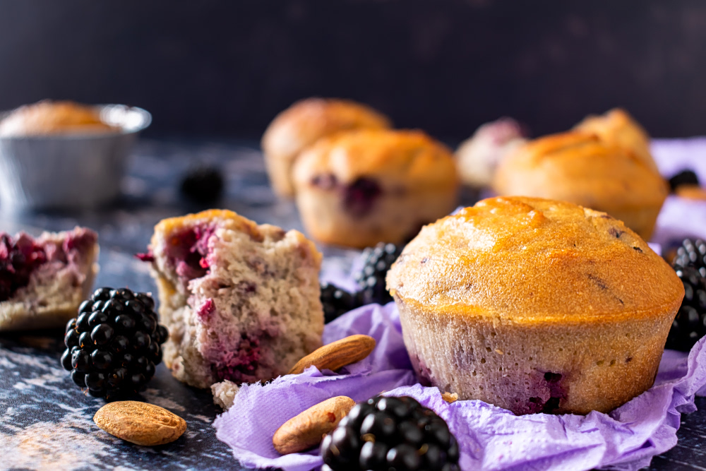 Στη συνέχεια βάζουμε το μείγμα σε μια σακούλα ζαχαροπλαστικής. Ρίχνουμε στα κεσεδάκια για τα muffins μερικές σταγόνες σοκολάτας, τα γεμίζουμε μέχρι τη μέση και συνέχεια προσθέτουμε από πάνω βατόμουρα.