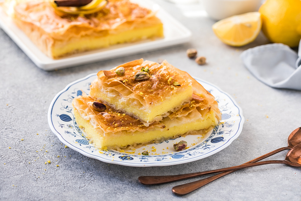 Όταν η γαλατόπιτα αρχίζει να δένει στον φούρνο, την αλείφουμε με το μείγμα ώστε να κάνει κρούστα.