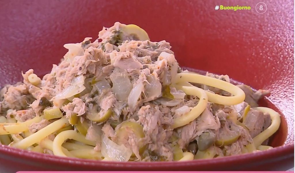 Λίγο πριν το τελείωμα, προσθέτουμε τον τόνο, δεν τον βάζουμε ποτέ από την αρχή γιατί θα διαλυθεί και θα γίνει σαν αλοιφή.